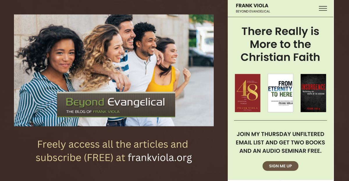 Frank Viola has helped thousands of people around the world to deepen their relationship with Jesus Christ and enter into a more vibrant and authentic experience of church. His blog, frankviola.org, is rated as one of the most popular in Christian circles today.